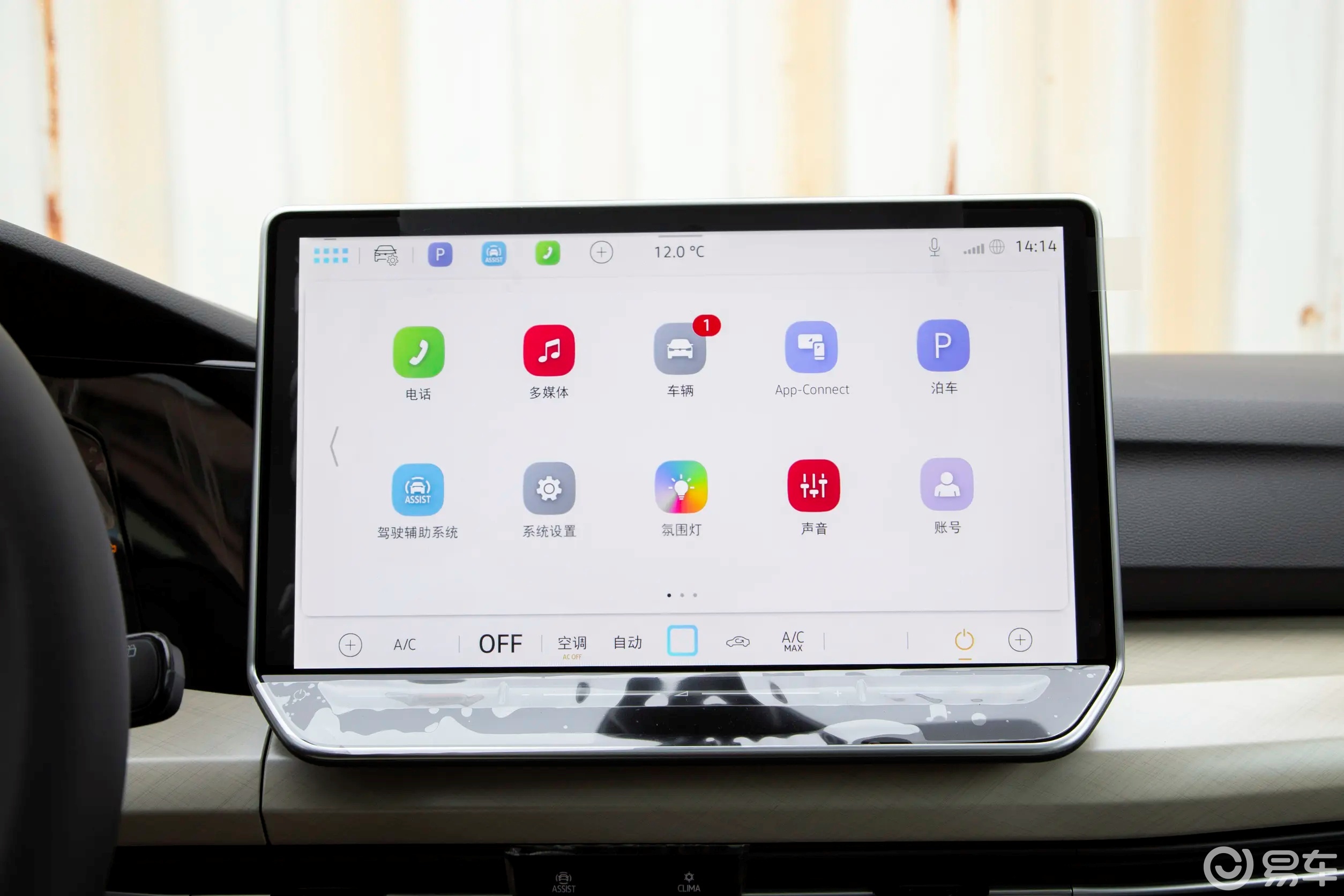 高尔夫的内饰采用的是环抱式的设计布局,且中控台的角度偏向于驾驶室,对于驾驶员的关怀度做得还算不错,车厢内采用了大量的搪塑材质以及些许皮质包覆,使其手能够触摸到的地方十分细腻,三幅式的多功能方向盘造型时尚美观,采用的是皮质的材质,支持上下前后四向调节功能,换挡形式为电子挡把,10.25英寸的全液晶数字仪表盘分辨率较高,可查看形成信息十分丰富,中控台则搭载了一块12.9英寸的液晶大屏,配备的是IQ. Connectivity车载智能系统,并内置了高通骁龙8155车载智能芯片,智能化的表现十分丰富,并带有CarLife、CarPlay以及HUAWEI HiCar三种手机互联映射功能,同时还可以将常用的APP下载至车机屏幕上,方便了日常的使用。