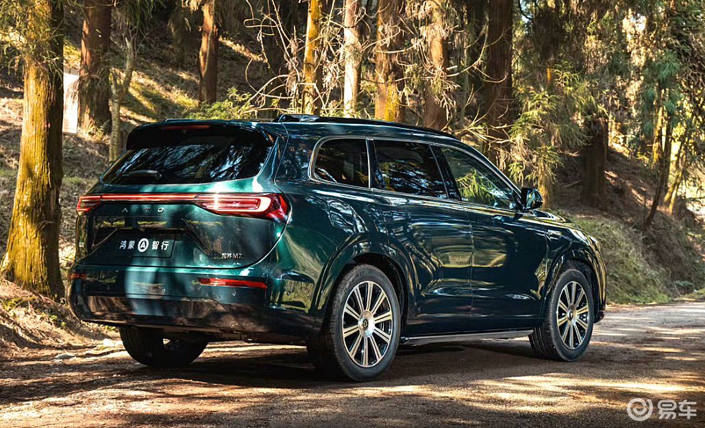 问界M7延续华为家族设计,贯穿式前大灯与熏黑中网形成一体化设计,尾部的 “飞翼” 式尾灯组辨识度极高。