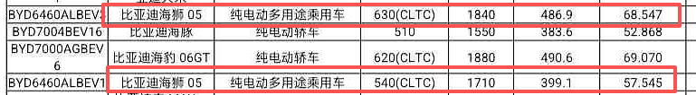 新款海狮05 EV也出现在最新一批申报目录中,外观针对细节进行调整,搭载200kW和240kW电机,匹配68.547kWh和57.545kWh电池组,对应续航里程为630km和540km。