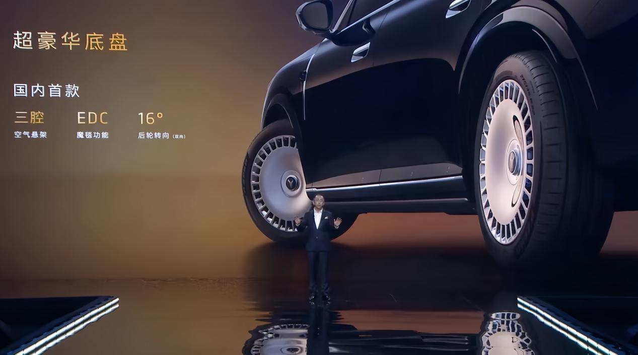 底盘部分,新车搭载国内首发的三腔空气悬架,配合EDC魔毯功能,同时配备双向16°后轮转向技术,最小转弯半径缩小至5.4米。