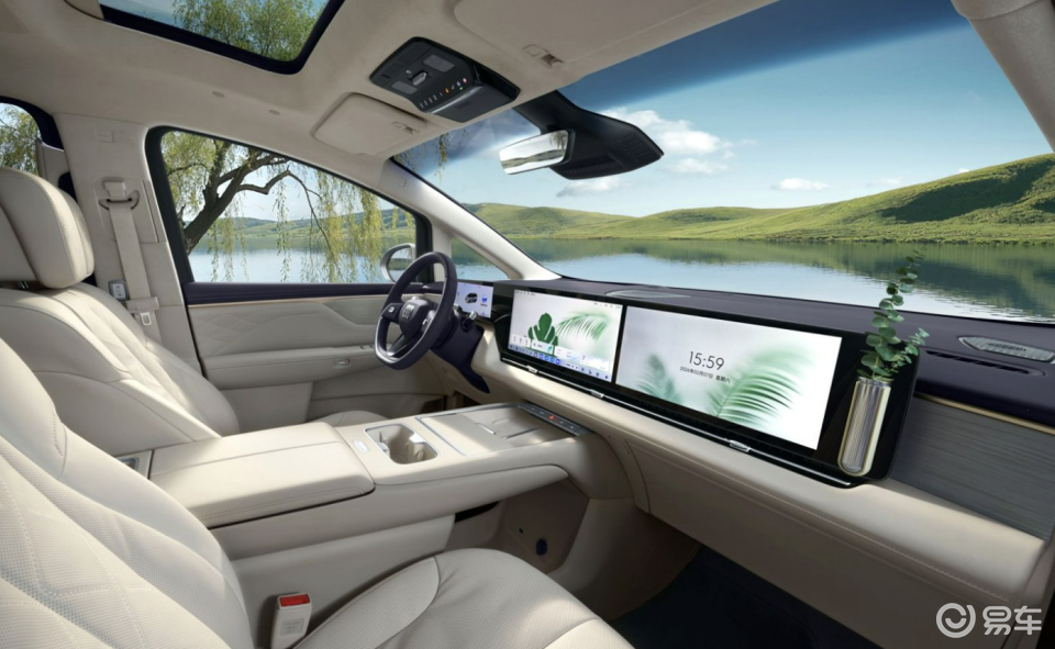 外观上,新车采用“水生美学”设计语言,低风阻流线型车身搭配全新双色哑光车漆涂装,采用12层百万级高定涂装工艺,质感拉满;车身尺寸达到5260mm×2023mm×1820mm,轴距3160mm,座舱纵向空间超3.6米,三排头部与肩部空间充裕,配合330mm三排电滑轨,彻底告别MPV第三排局促痛点。