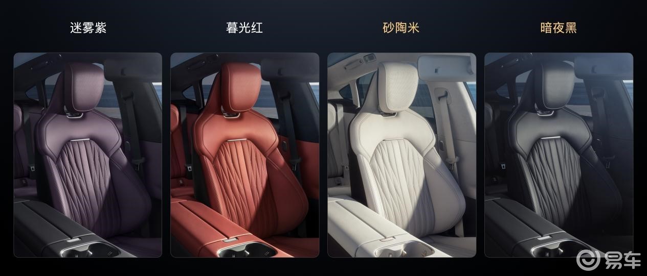 内饰则迎来全方位升级,新增暗夜黑、砂陶米两款内饰色,中控台改为对称式布局,高频接触面100%软质材料包裹并通过OEKO-TEX 100最高等级认证。3636mm同级最长环抱式氛围灯,支持拼色、音乐联动与开门预警,搭配豪车级绗缝工艺,营造极致精致感。座椅体验更是亮点十足,主驾18向电动调节配60mm电动腿托,副驾可选123°零重力座椅,全系标配座椅通风加热,主驾10点按摩功能拉满舒适体验;后排座椅加厚填充、优化躺倒角度至121°,加宽睡眠头枕大幅提升长途乘坐体验。