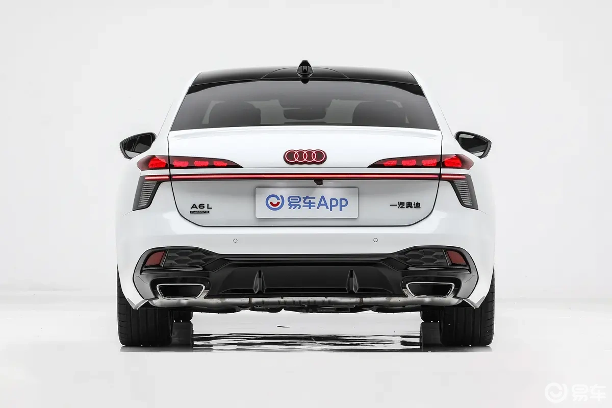 车尾部分,全新奥迪A6L车尾同样采用狭长的尾灯组,同样可切换多种动态灯语,灯组下方加入亮黑的导流槽装饰,形成分体式灯组的设计假象。同时,新车配备黑色下包围搭配镀铬饰条,与车头形成呼应,还提供双边共双出式矩形“真排气筒”,不再是现款车型的隐藏式设计。