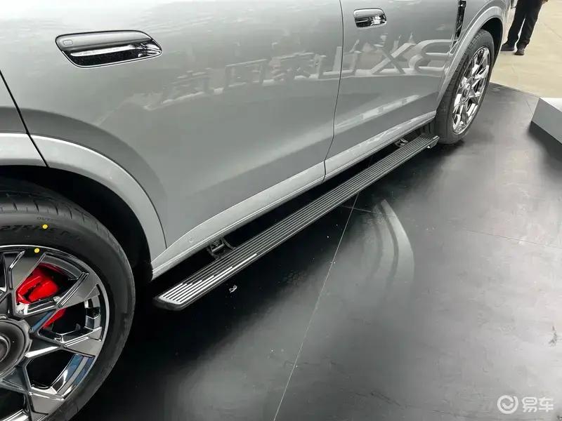 此外,新车配备了大尺寸的轮毂设计,表面镀铬抛光处理,视觉上如镜面般璀璨,内部红色高性能刹车卡钳若隐若现,进一步提升运动气场。同时,新车车门下沿配备电动迎宾踏板,豪华感十足。