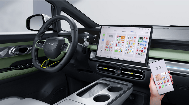 2025 款 AION Y Plus车机系统也进行了革新,比如导航系统新增红绿灯读秒功能 ,路口等待不再盲目;车机实现PAD化界面,手(手机)车互联,支持Carlink /HiCar互联,无论苹果手机,还是华为手机都能一键投屏,而且还有超百款APP上车;