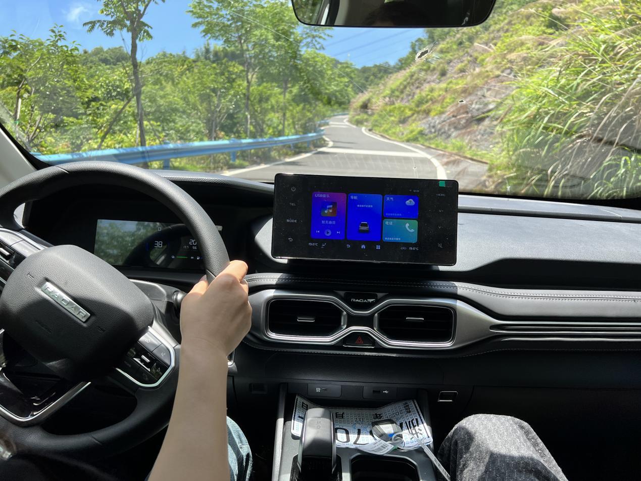 产品workshop结束后,我们从火山越野公园出发,首先驶入了一条经过村庄的小路。在村里行驶时,雷神 EM-P 展现出了良好的操控性。在狭窄的村道上,系统无缝切换至纯电或高效串联模式。深踩油门的暴躁轰鸣瞬间消失,耳边只剩下轻微的风噪与轮胎摩擦路面的沙沙声。纯电驱动的静谧性让穿行于青瓦白墙之间成为一种享受。