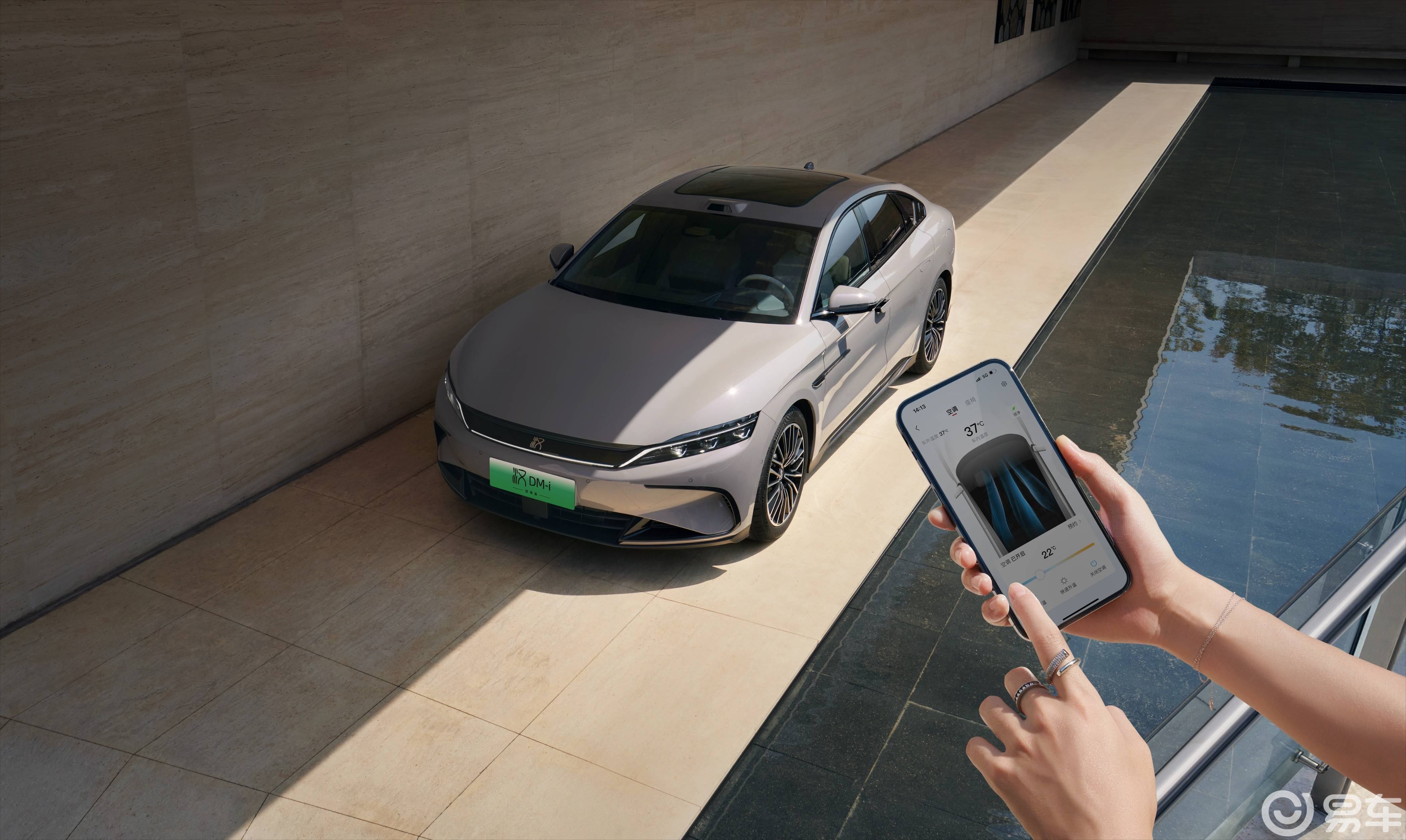 比亚迪汉DM-i的外观优雅大气,前脸半封闭式造型,配上悬浮式龙晶LED前大灯+贯穿龙须式日间行车灯,看起来非常有视觉冲击力;溜背式造型车身配合隐藏式门把手,营造出前卫而又时尚的视觉气息。汉 DM-i虽然颜值很不错,但与风云A9L相比还是有点保守,缺乏了些运动感和精致度。