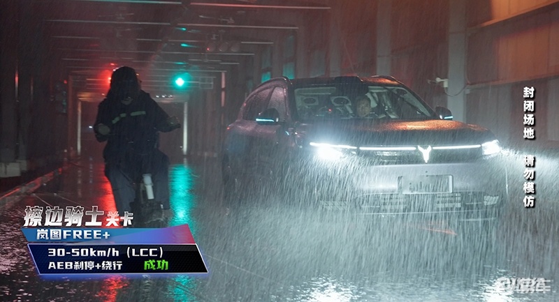 在夜间逆行、中雨直道、雨中衣骑手斜插的高难度场景测试中,因为策略的不同,岚图FREE+在刹停时,采取了避让的动作,一个辗转腾挪安全的避让了外卖小哥,而理想L6不仅没能及时刹停,AEB也没有触发,“当场送外卖小哥去了医院”。要说AEB安全这块,岚图FREE+不愧是搭载了最新的乾崑智驾系统,理想L6根本没法比。