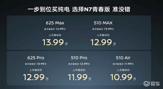 与现款在售的2025款车型相比,日产N7青春版整体规格保持一致,但在配置和价格方面进行了调整,续航里程也从原先的五种缩减为510公里和625公里两种。