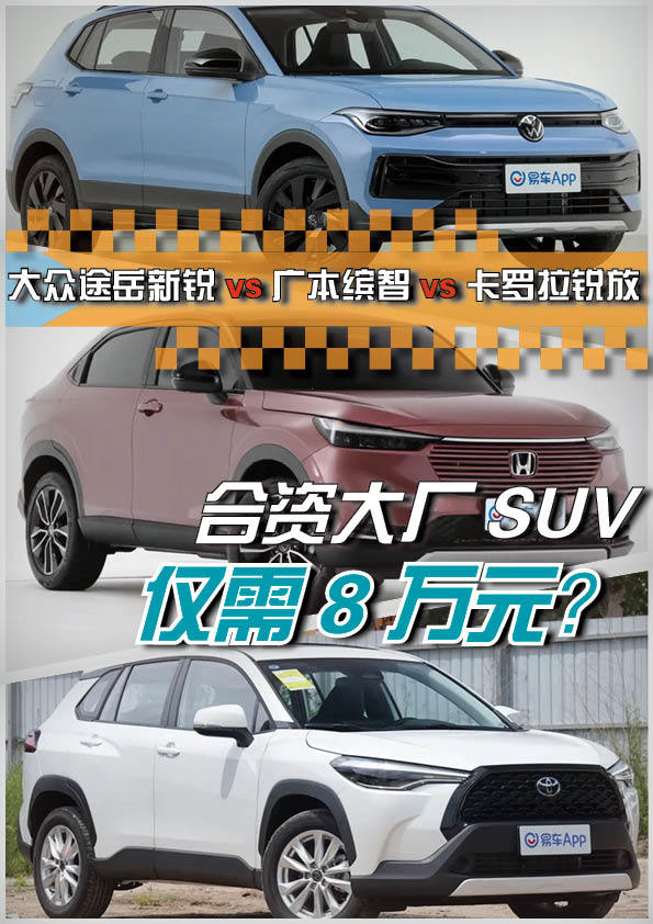 合资SUV仅需8万?大众途岳新锐对比广本缤智、卡罗拉锐放
