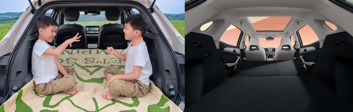 值得一说的是,东风纳米06空间设计上还很会创新,前排座椅支持放倒至接近平躺的角度,且与后排座椅可形成平整空间,后备箱是采用同级别唯一的天地门,不仅能减少后备箱开启时的空间占用,150kg的承重能力还能让它作为露营吧台、户外餐桌、休闲长椅等等,能够满足年轻人更多的场景需求。