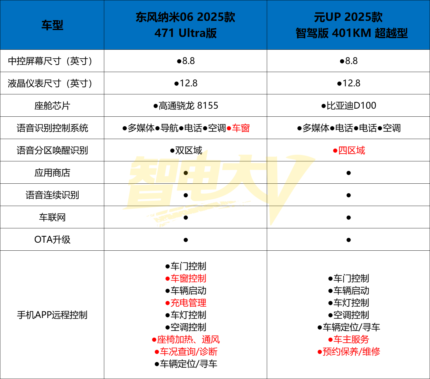 当然具体到车机功能上,两车还会有些差异,东风纳米06采用基于天元OS和太极大模型打造的天元智舱,拥有丰富的语音车控功能和手机APP远程控制功能,比如手机可以远程控制座椅加热、通风,上车就可以享受一个舒适的座椅温度,元UP则支持四音区语音交互,只是后排音区实际体验时,指令成功率并不是很高。
