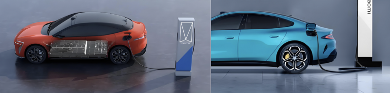 阿维塔06在充电(左)与小米SU7在充电(右)