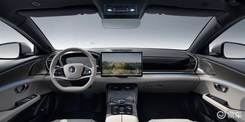 智能化和舒适性配置同样相当丰富,毕竟两车都是各自的旗舰产品。比亚迪汉DM这边非常熟悉了,整体以豪华氛围为主,配合软质材料以及菱形缝线设计,主打一个居家。车内配备12.3英寸液晶仪表,15.6英寸自适应悬浮屏幕,采用DiLink 100智能座舱,整体灵活度以及使用便利性表现不错。配置上W-HUD、方向盘加热、前排座椅加热/通风/按摩(高配)、丹拿12扬声器(高配)都给到了。并且智驾版车型全系标配DiPilot 100 L2级别辅助驾驶系统,芯片为英伟达Orin-N,算力为84TOPS。顶配激光雷达版本则为英伟达Orin-X芯片,算力达到254TOPS。