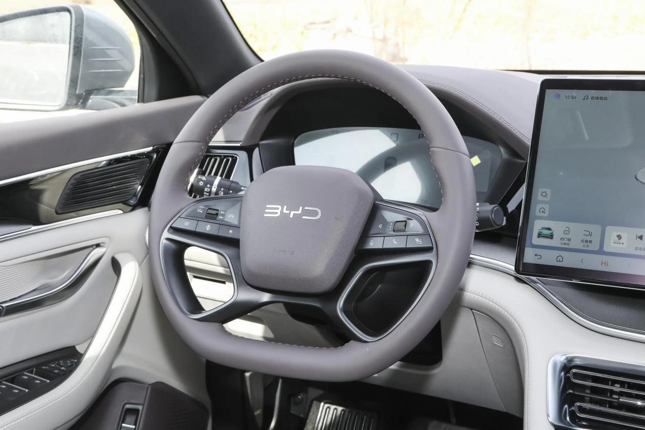 包括内饰,可以双向好评的是,两款车内饰用料都不差,在双拼色和大量软包面料、钢琴烤漆面板加持下,两车内饰质感足以完胜同价位合资产品。但还是那句话,从中央岛台、方向盘造型、车门等细节设计来看,长安启源Q07拥抱智能化、极简化的力度,都比宋PLUS DM-i更强。