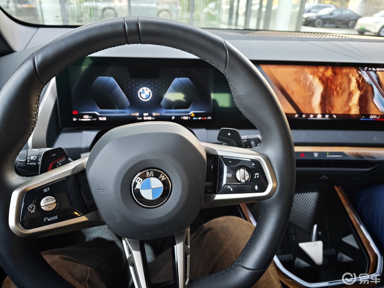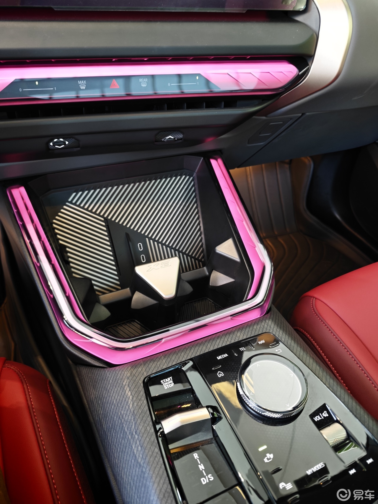 一是跟上潮流的同时挑战了大家的审美与使用惯性。它和奥迪不是一个路数,虽然都运用了大面积连屏,都尽可能减少了实体按键,但奥迪的细节设计会更加简洁大方,宝马的问题在于有点用力过猛了——大面积颜色艳丽的水晶氛围灯、杯架前方的细线条装饰、门板上被挤在一起的控制按键和开门把手,配上副驾驶前方空空荡荡的仪表台,以及“素净朴实”的空调出风口,给我的感觉就像一位浑身肌肉训练有素的大力士却没有锻炼胸肌,左二头肌还比右二头肌大出一坨来。