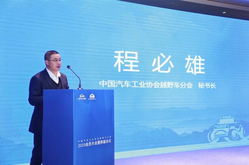 新一届越野车分会秘书长程必雄在发言中,对未来理事会的工作愿景进行了介绍。他表示,新一届理事会要全力整合民族越野品牌资源,以 “星火燎原” 之势,驱动国内市场拓展与国际品牌跃升,点亮中国越野品牌之光,扬帆出海竞逐全球。在后续工作中,越野车分会要坚持搭建高效的技术共享平台,赋能技术攻关实现突破;精心组织各类车友俱乐部、交流活动,提升会员单位综合竞争力;也要持续致力于培育越野文化生态,塑造中国特色的越野品牌形象。