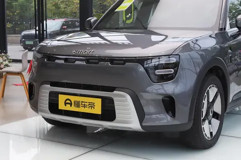 车侧显著的特征是粗壮的C柱和上面如同品牌印章的smart字母LOGO。车辆长宽高分别为4705/1920/1710毫米,轴距为2900毫米,离地间隙为192毫米,这不仅带来了更稳重的体态,也意味着面对一些非铺装路面时能更有底气。车尾则对后包围进行了重新设计,纯电版上的银色护板被枪灰色饰板与全新牌照框架所取代,增添了几分“探险气质”。新车提供星漩蓝、粒子白、流沙金、苍岩灰以及赛博银五种外观颜色,满足不同消费者的个性化偏好。