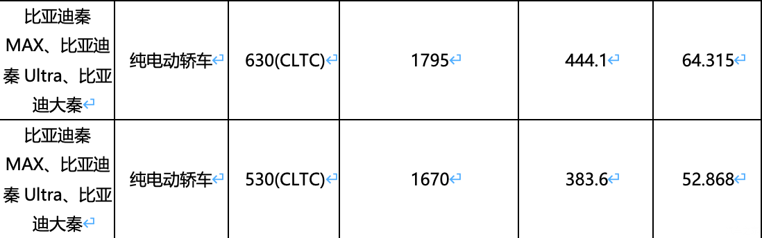 比亚迪多款新车续航曝光 宋Ultra续航710km