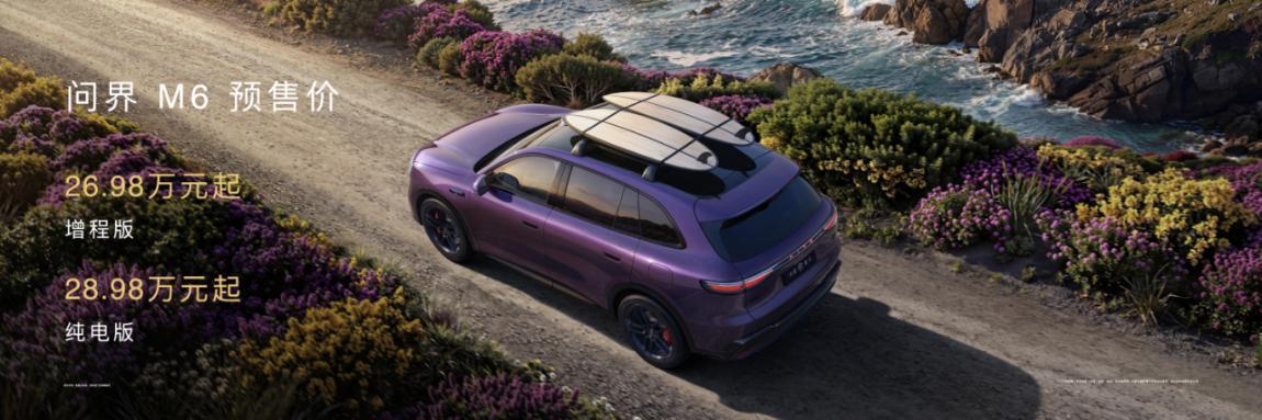 紧随尚界Z7系列登场的问界M6,是鸿蒙智行面向新锐消费群体打造的智慧中大型SUV,增程版预售价26.98万元起、纯电版28.98万元起。这款新车的风阻系数达到0.239cd,同时标配华为途灵平台,应急涉水深度达到700mm,兼顾颜值与通过性。