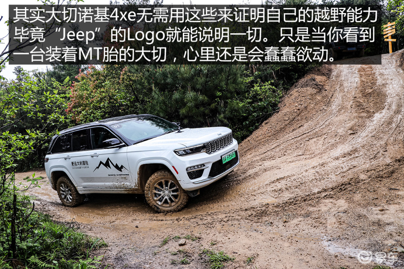 此前我们已经对全新大切诺基4xe进行过静态体验,所以这次还是先和大家分享一下新车的驾驶感受,而且是硬核的越野驾驶感受。我国素有“基建狂魔”的美名,所以也难为Jeep厂方找这么一段适合越野的路。其实这段路对大切诺基4xe来说也并没什么难度,如果不下雨的话,用原车的固特异公路胎就能轻松征服。只是试驾活动的那几天一直在下雨,所以换一套MT胎还是很有必要的。
