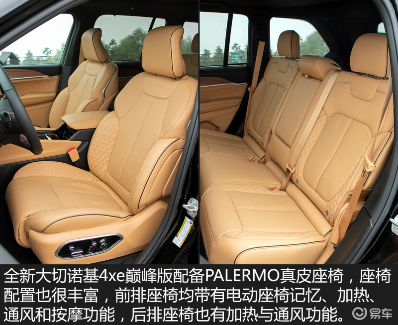好了,驾驶感受这次就和大家分享这么多,现在我们再一起来回顾一下全新大切诺基4xe的外观与内饰设计。全新大切诺基4xe拥有黑化处理加宽加大的标志性七孔格栅,全新的前脸造型更加精致,型面雕塑感加强。引擎盖采用水平布局,车头呈现出向前俯冲的姿态。另外巅峰版车型会标配亮黑色悬浮式车顶,远峰版车型则可以选装。