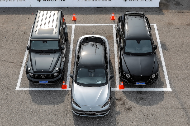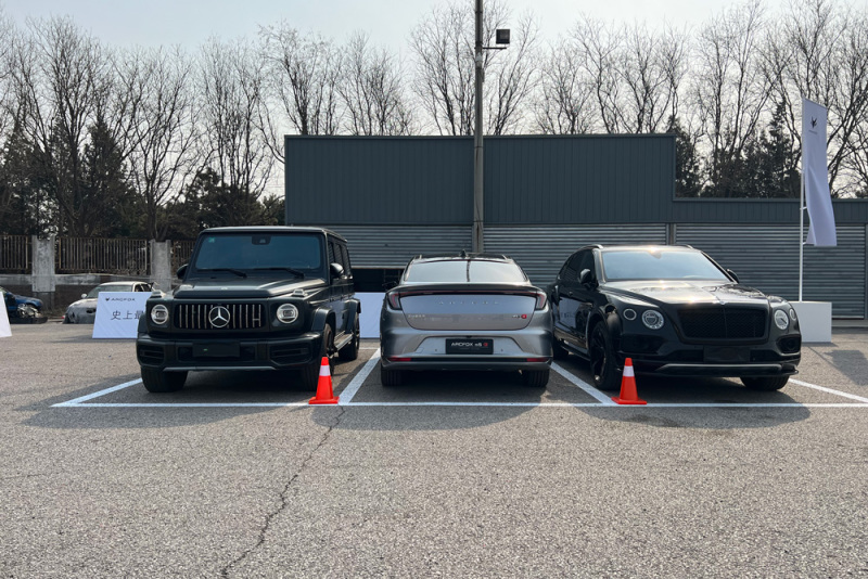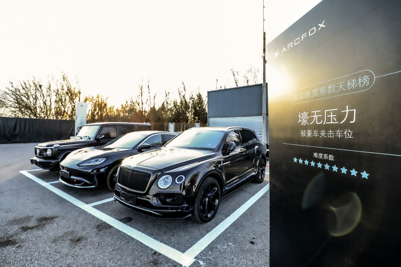 在众多的体验环节中,首先体验了王者区的壕无压力项目,通俗的讲就是将左右两侧车位停放两款百万级以上的豪车,这里其实最大的感触就是对于驾驶者的心理考验,是否会紧张。 在这里需要提及的是,极狐阿尔法S 全新HI版不仅支持车尾泊入,还支持车头泊入的方式,系统逻辑清晰,规划路线也在安全且避免剐蹭的情况下进行。