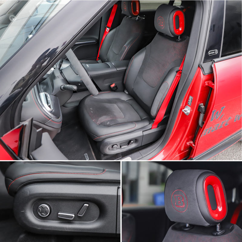 座椅方面,BRABUS性能版采用了Microfiber超纤绒材质的运动型座椅,配色依旧为黑红配色以及红色缝线做点缀,头枕上也刺绣了专属的BRABUS徽标,同时安全带也换成了醒目的红色。座椅功能方面,前排座椅均配备电动调节以及座椅加热功能。