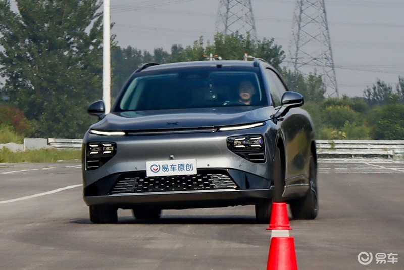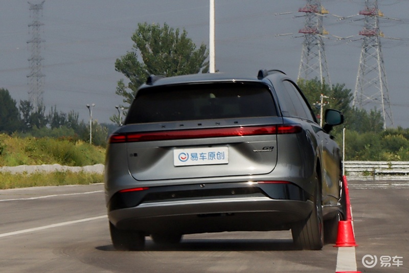 小鹏G9的转向部分电子味比较浓,不同的模式下转向手感上只是轻重的变化,并且存在一定虚位,也缺乏沟通感,绕桩过程中需要去适应一下,并且进行小幅度的方向修正。