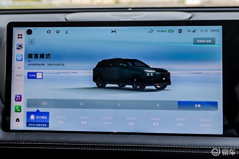 日常驾驶,G9这台车整体给人的感觉更多的还是兼顾舒适性,不同驾驶模式下动力响应速度会有一定的变化,但不会过度阉割动力即使是节能模式高速状态下中后段超车动力也是够用的,另外加速踏板的调校风格和燃油车比较接近,如果从油车直接换到这台车并不需要刻意的去适应。