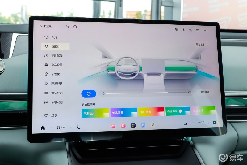 车辆内饰座舱设计采用了星河AI理念,整体为环抱式造型,营造出沉浸的舒适氛围。仪表台采用了大面积的软质包裹,贯穿式的256色水晶氛围灯设计也是别出心裁。