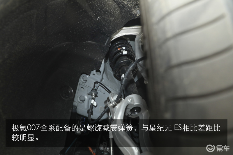 在底盘配置上,极氪007全系也均未配备空气悬架和CDC电磁减震系统。此外,我们还注意到,极氪007低配车型的前轮采用的是浮动式的刹车卡钳,这在视觉效果及刹车性能上,和星纪元 ES还是有不小的差距。