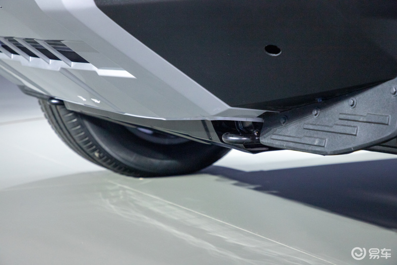 车头下方的护板覆盖面积比较大,能在越野时提供比较全面的保护作用,而且设计有较大的倾角,提升越野时的通过性,材质为上半部分塑料,下半部分钢板。