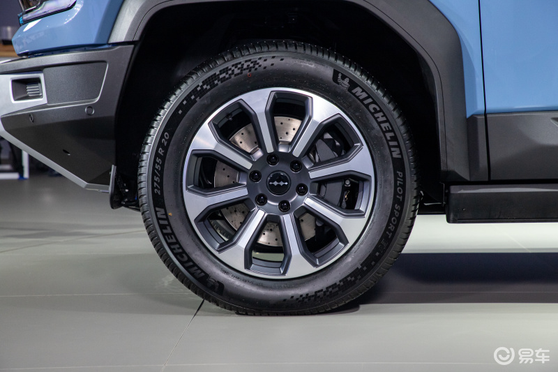 豹5 云辇-P版本将会配备偏向城市一些的银色轮圈,轮胎也采用偏向舒适取向的米其林PILOT SPORT EV轮胎,尺寸为275/55 R20。