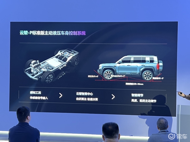 豹5采用了全新的DMO混动系统,O代表着off-road,也就是专为越野打造的混动系统,云辇-P就是一套具有主动液压控制功能的非承载式底盘。