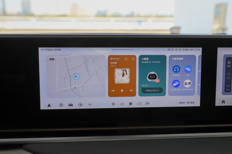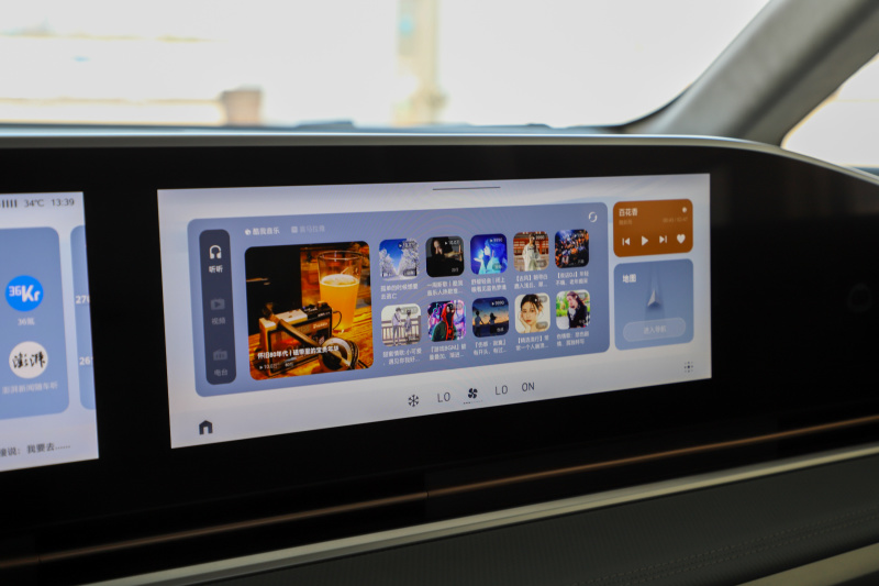 大家MIFA9配备了10.25英寸的全液晶仪表盘,至于中控屏和副驾娱乐屏的尺寸则都为12.3英寸,车机的UI设计符合用户习惯,最下端则是快捷操作按键。副驾娱乐屏则除了常规娱乐功能之外,还能够满足一些车控功能。另外大家MIFA9搭载了HUD抬头显示和流媒体后视镜,可以有效提升实用性。大家MIFA9为双芯片加持,搭载当下主流的高通骁龙8155芯片以及来自联发科的8666芯片,搭载的智能车机系统内包含AR实景导航、智能语音系统、全速自适应巡航、UTOPILOT友道智途高阶智驾辅助系统、车联网以及OTA升级等功能一应俱全,同时这次大家MIFA9的如影随形功能也有所配备,配合OMS系统它可以对第二排乘客进行人脸识别,自动登录当前人脸绑定的账号。大家MIFA9还拥有V2L车外放电功能,可实现整车对外放电,将高压直流电转换成220V交流电,给车外负载及车辆进行供电,功率可达6.6kW。