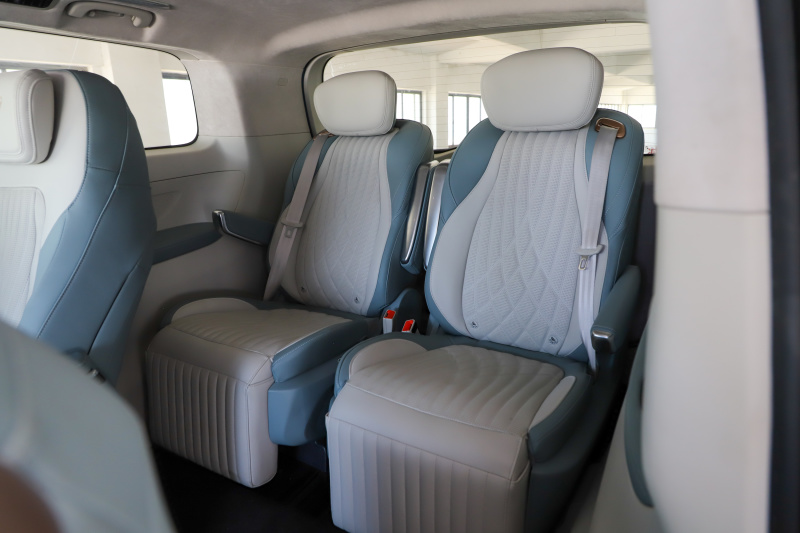 岚图梦想家则采用了2+2+3的7座布局设计,第二排为独立座椅,前排座椅功能上,梦想家只拥有座椅加热/通风功能,至于在第二排独立座椅上,梦想家相比大家MIFA9要缺少了左右调节功能,其余功能相差不大。而在第三排座椅的配置上,大家MIFA9不仅支持电动调节,还拥有座椅加热/通风/按摩功能,梦想家的第三排则并没有配备太多舒适性配置。