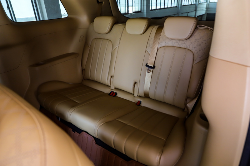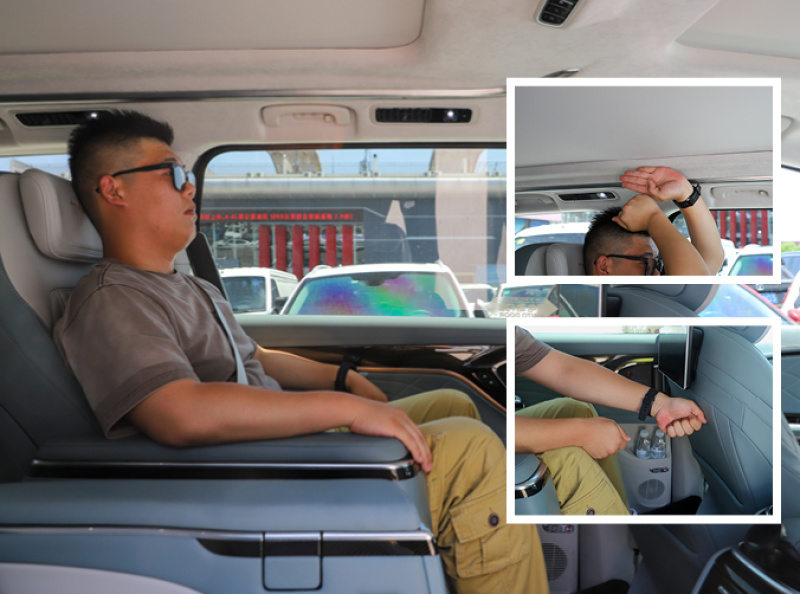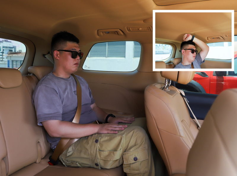 再来看看梦想家的车内空间吧,183cm的体验者坐在第一排,头部空间还有一拳两指。来到第二排,头部和腿部空间均为一拳四指。至于来到第三排,头部空间为一拳,腿部空间虽然还有富余,但是明显要小于MIFA9。从空间实测来看,大家MIFA9的内部乘坐空间无疑要优于梦想家。