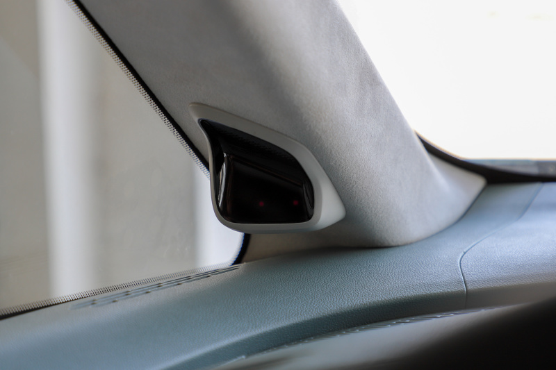 大家MIFA9搭载了DMS主驾驶生物识别系统采用1个200W像素摄像头,对主驾驶进行人脸识别,提前绑定个人信息,还可对驾驶员进行疲劳监测。