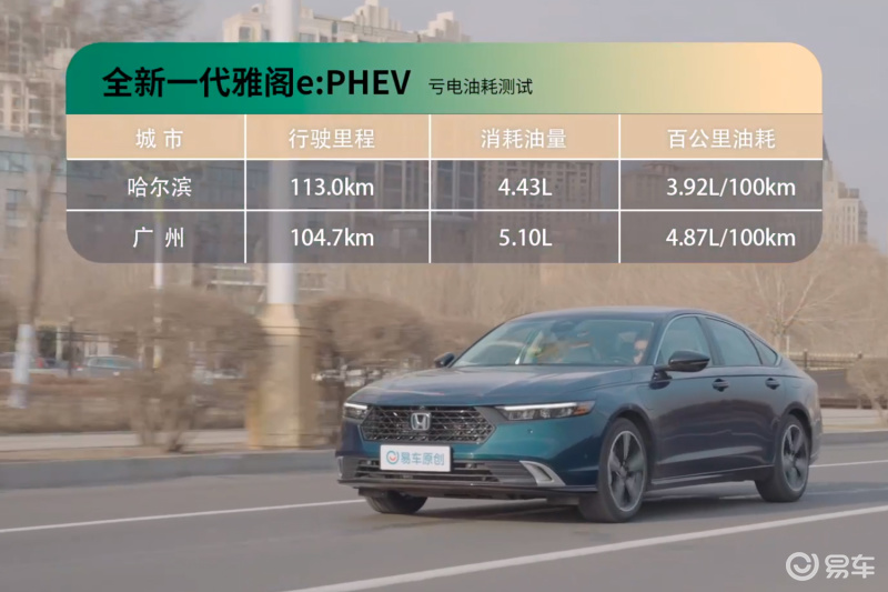 同样在广州和哈尔滨,我们测试了第十一代雅阁e:PHEV的亏电油耗,广州为4.87L/100km,哈尔滨为3.92L/100km,在寒冷地区油耗水平相对还更低一些,原因就是发动机无需频繁启机协助空调压缩机工作,但无论如何,第十一代雅阁e:PHEV的亏电油耗表现得都非常理想。