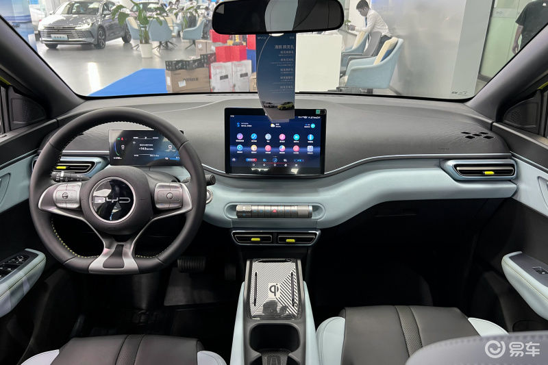 别看海鸥定位于城市代步车就觉得它的用料不行,即便不是顶配的车型一样都采用了大面积的皮质包裹,放眼望去蓝色的区域大部分都是皮质包裹。