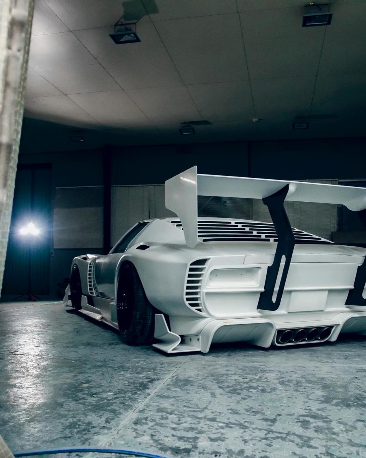 车尾视觉,整个后翻盖也经过重新设计,除了一体式宽体设计之外,还能看到经典的百叶窗设计,以及狂野的后扩散器。而且这是一款 LB 车型,如果没有高耸的GT大尾翼和从后保险杠向上延伸的立柱,它就是没有灵魂的作品。