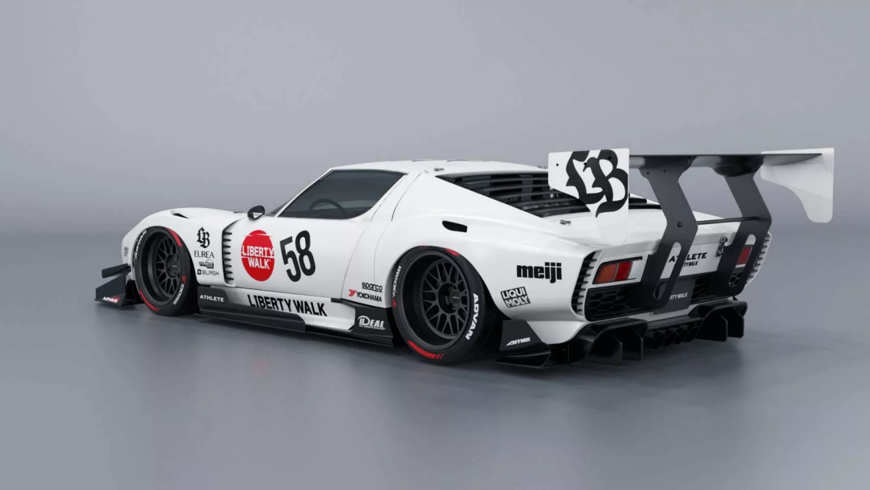 其实,Liberty Walk在 2018 年就发布过一台改装版“兰博基尼 Miura”,当时还引起了不小的轰动。而那辆车实际上只是基于福特 GT40 套件车架制造的复制品,毕竟一台车况完好的Miura就能卖数百万美刀,极具收藏价值。