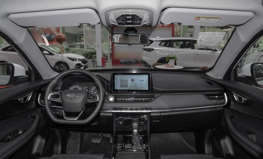 进入瑞虎5x的座舱,中控台布局层次分明,在奇瑞多款车型中都见过,三辐式方向盘采用平底式设计,容易激发人们的驾驶乐趣。10.33英寸的触控屏悬浮在中控台正中央,下方还配有8英寸中控下屏,触控屏有较宽的黑边,有着强烈的燃油车意味。下屏则用来调节空调,比传统的实体按键看着高级。遗憾的是,瑞虎5x的触控屏功能配置较为单一,只能通过原厂原机来拓展车机功能,此处还有一定提升空间。倒车影像显示清晰,屏幕略带颗粒感,对此也能勉强接受。