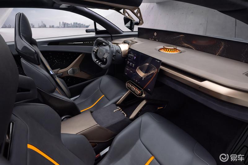 内饰方面,新车搭载鸿蒙OS系统,采用了天际全景屏、中控智慧屏以及智慧中岛一体化设计方案,打造了极简的新一代天际线智能座舱。配备扁平式运动方向盘和大尺寸中控屏,中控屏下方扶手处采用金色装饰。可升降智慧中岛设计集成了氛围灯、音效、香氛以及先进的语音交互功能。此外,新车采用四座布局。