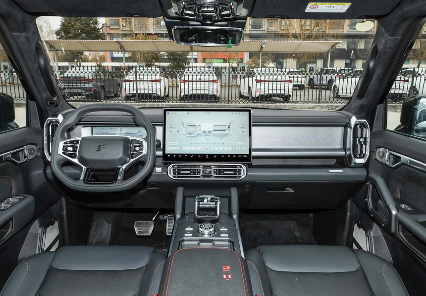 在8挡手自一体变速箱匹配上,换挡逻辑比较清晰。其传动效率高,加速响应快,越野时动力传递稳定,助力通过复杂地形。同时,驾驶模式丰富多样,驾驶者可依路况与心情自由切换,享受个性化驾驶。不过,城市综合油耗较高,WLTC综合油耗为8.35-10.98L/100km,主要因频繁启停影响发动机工况,高速油耗虽有改善,但与省油车型比仍有差距。