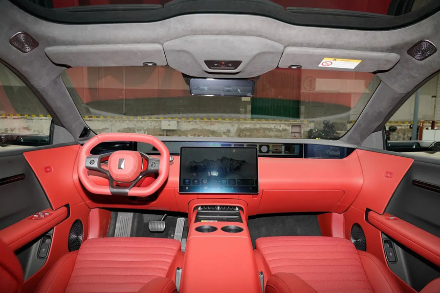 车内打造舒压豪华座舱,带来奢享的座舱体验,360°环绕式座舱,新增全新“岱红”内饰主题,且全系标配前排双零重力座椅,支持电动调节、一键放倒、加热、通风以及按摩等功能。并配备了中央触控显示屏、平底式多功能方向盘及拨杆式换挡机构,保留了一体式超长远端屏。新车还提供纳米水离子空调,可实现杀菌祛味、补水护肤和防静电等功效,还能有效保湿补水,打造车内空气面膜,使座舱变成“移动氧颜舱”。此外,新车还全系标配英国之宝25扬音响,拥有2016W最大功率,7.1.4全景声场,搭载了华为鸿蒙HarmonyOS智能座舱,可实现多屏联动,支持备无缝互联、语音助手全场景控制,导航、音乐、畅连等功能随心可用。主动安全方面搭载了华为乾崑智驾,配有华为全向防碰撞系统CAS3.0,具有全天候、全场景、全目标的超全感知能力,200ms的超快响应能力及实车数据+云端叠加验证的超前全验证等三大核心能力,安全再进阶。