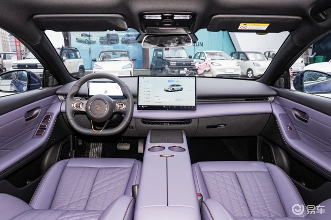 内饰方面,共有雅黑、悦白、绛紫三款内饰配色,搭载1680万全色域氛围灯,7处布置都采用隐藏式设计,呈现直瀑式效果,支持无极调色。
