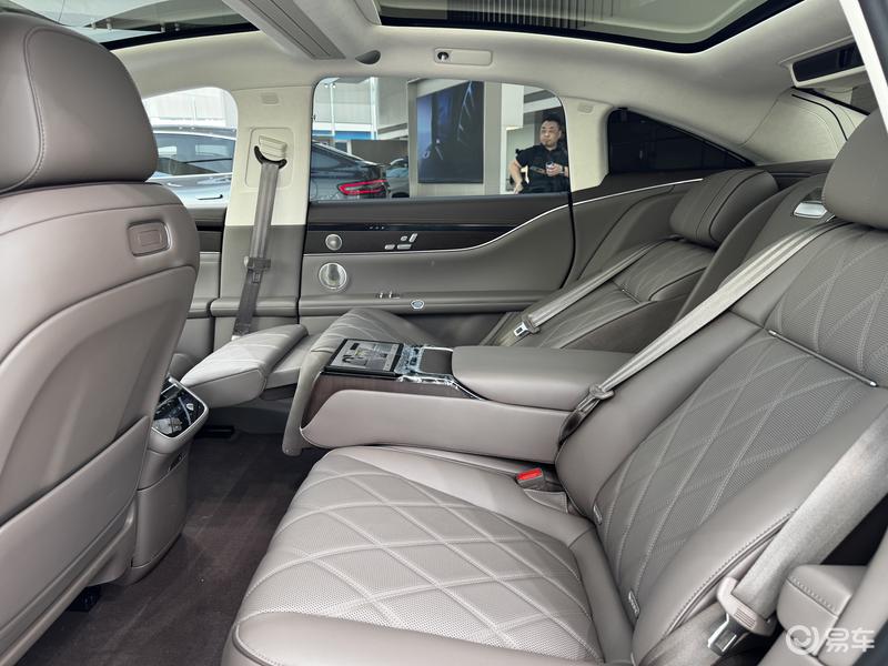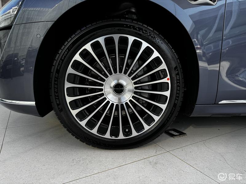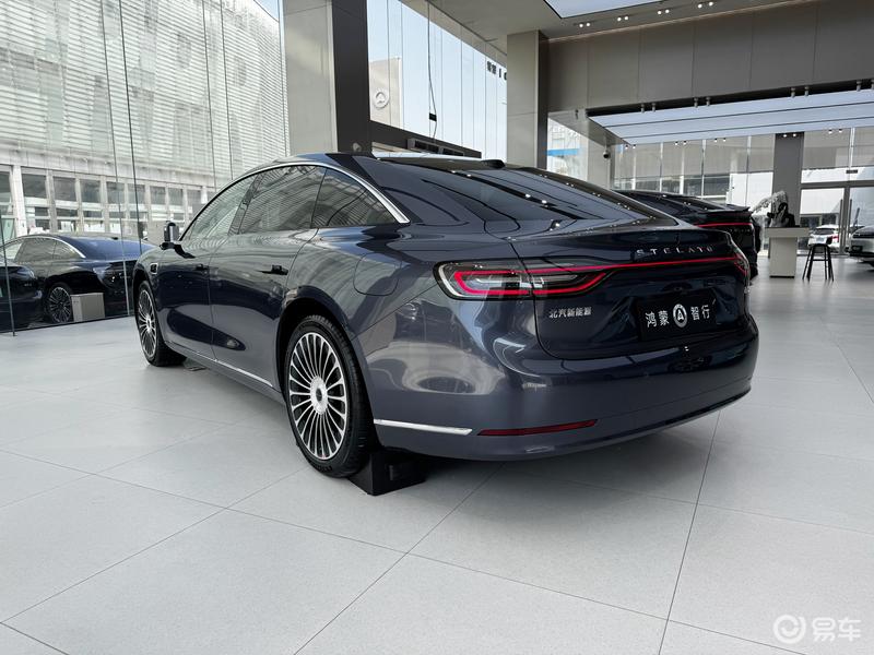 车身侧面,新车车顶线条采用了非常圆滑的弧形线条,车辆前后侧翼子板微宽出车身,腰线则平整的贯穿侧面,配合隐藏式门把手、米条辐轮圈等设计。车身尺寸方面,新车长宽高分别为5160*2005*1485mm,轴距为3050mm。来到车尾,新车采用贯穿式尾灯组设计,两侧光源呈现缓装设计,在点亮后具有不错的辨识度。