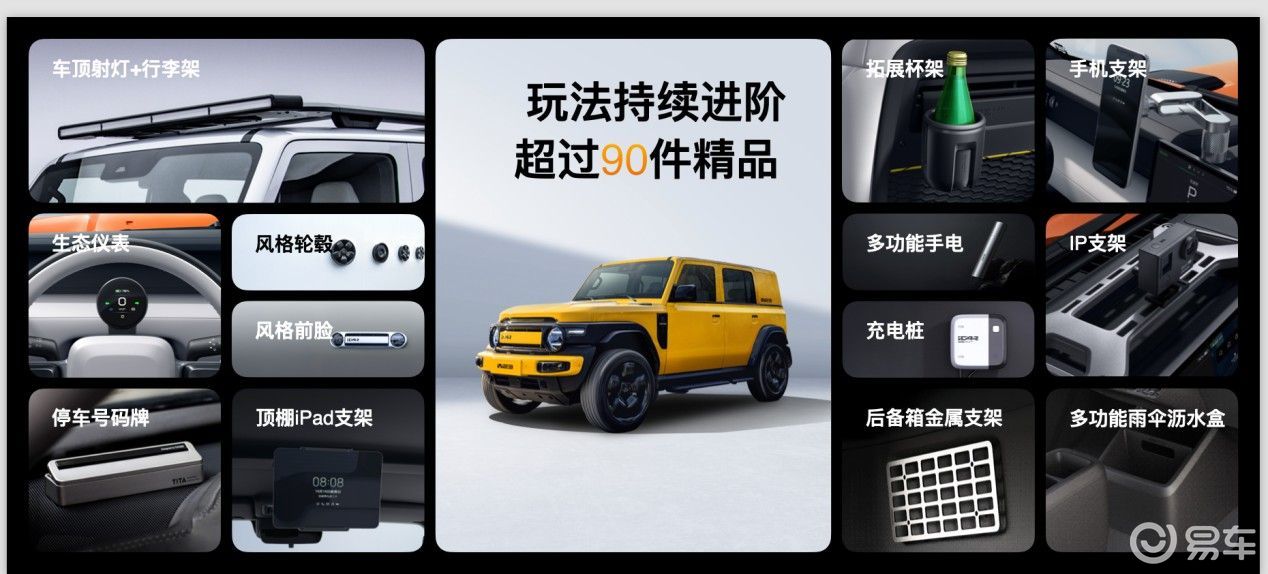 作为一款好玩、好改的“年轻人的大玩具”,iCAR V23原厂预留多处1/4螺丝标准接口,拥有无限的后装拓展潜力,目前已在官方商城累计上架超过90件精品,让V23的可玩性持续进阶。